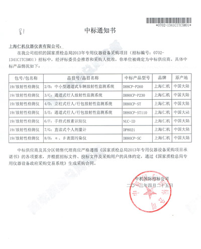 2014 商检中标通知书