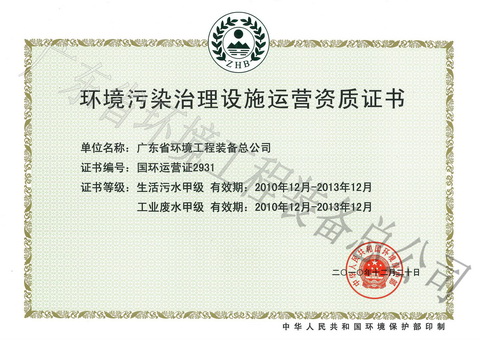 环境污染治理设施运营资质证书